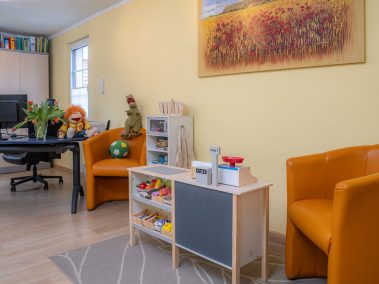 - Warteraum mit Zeitschriften, Kaffeemaschine, erfrischenden Getränken und einer Spielecke